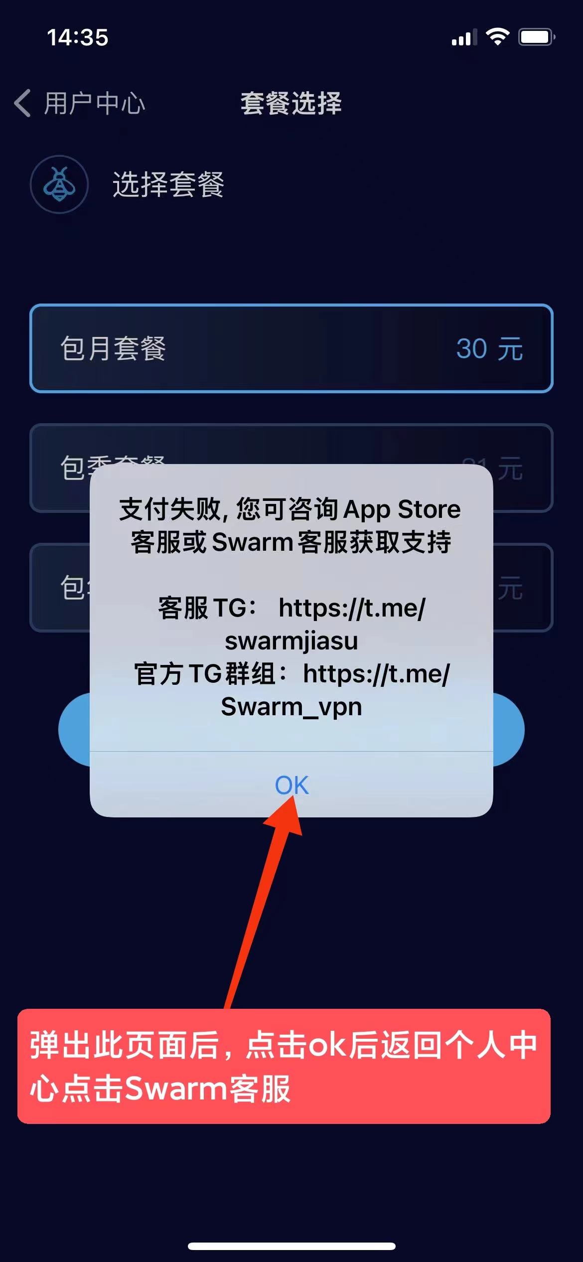 3、点击ok后返回个人中心点击Swarm客服